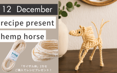12月のレシピプレゼントは、お正月飾りにもぴったりな『サイザル麻でつくる馬飾り』のレシピです。